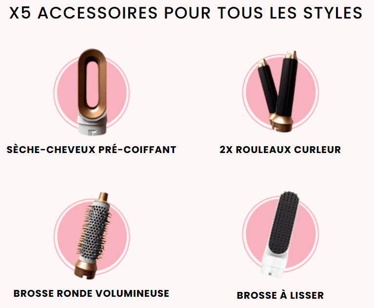 Quel que soit le type ou la longueur des cheveux, l'Airstyler offre une flexibilité de coiffage maximale grâce à ses 5 accessoires différents.